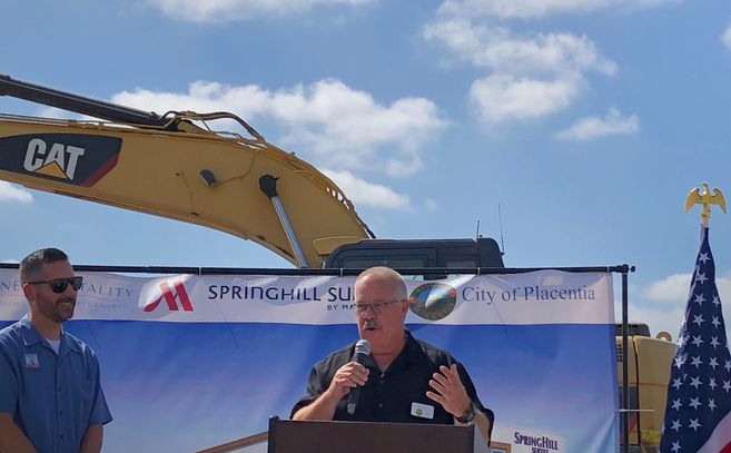 Speaking at the groundbreaking of the new Springhill Suites Hotel by Marriott in Placentia.